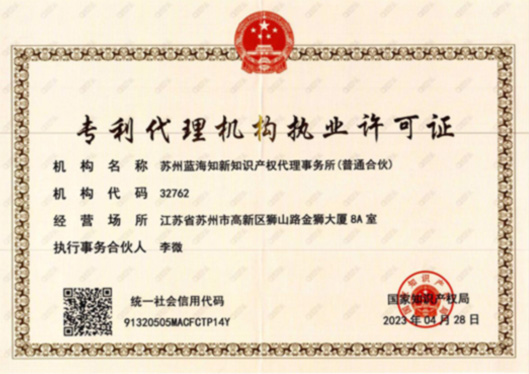 • 蘇州藍(lán)海知識(shí)產(chǎn)權(quán)代理有限公司  備案號(hào):蘇ICP備19025706號(hào)-1